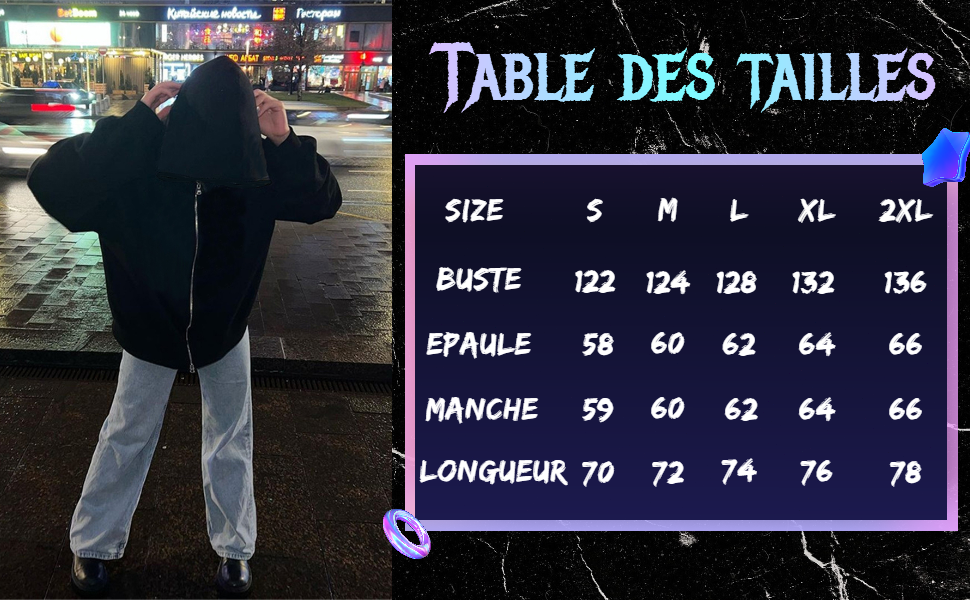 Grâce à sa coupe moderne et ses finitions soignées, cette veste met en valeur toutes les morphologies. Et si tu hésites entre deux tailles, nous te conseillons de prendre une taille au-dessus pour profiter d’un rendu encore plus stylé et oversize, pile dans la tendance actuelle.