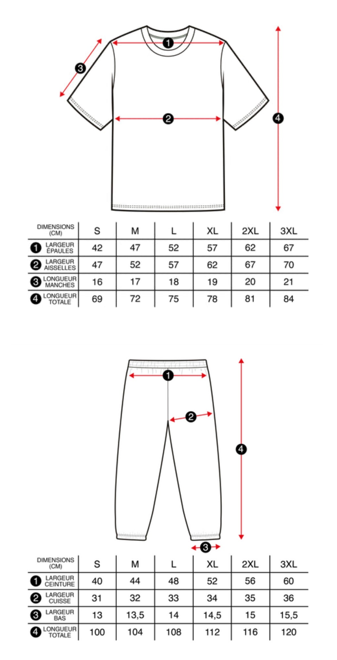 - • Pantalon : Taille élastique + poche arrière + coupe loose tombante